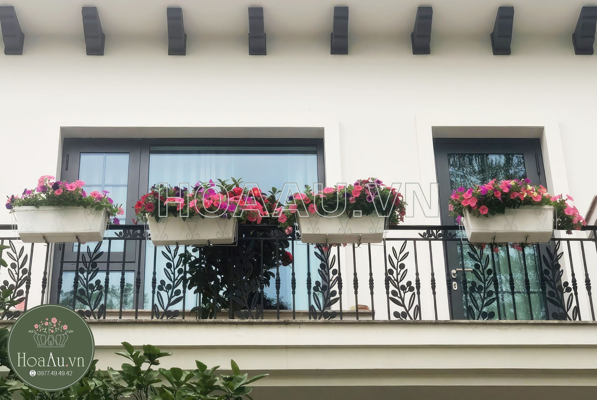 Hoa Âu xin cảm ơn chị Liên – khu Biệt thự Vista Lago – đã cung cấp hình ảnh 21 chậu hoa ban công sau 01 tháng lắp đặt